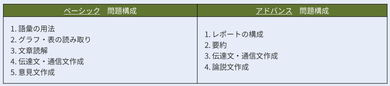 また、アセスメントは選択したレベル(ベーシック・アドバンス)で設問レベルが異なります。問題構成のイメージはこちらです。