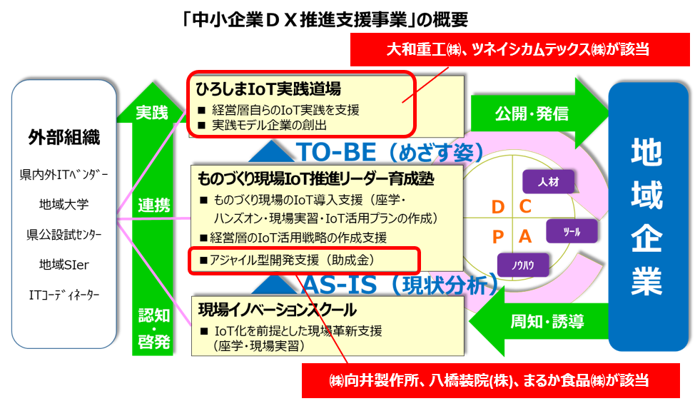 広島県とひろしま産業振興機構では、ものづくり中小企業の"DX(デジタルトランスフォーメーション)"を支援しています。