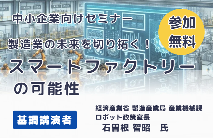スマートファクトリー推進支援センターの設置を記念して開催するこのセミナーでは、ロボットの導入などデジタル技術を活用して生産性を高めるスマートファクトリーの取組について、国の施策や地域の取組事例などを通じて分かりやすくお伝えします。