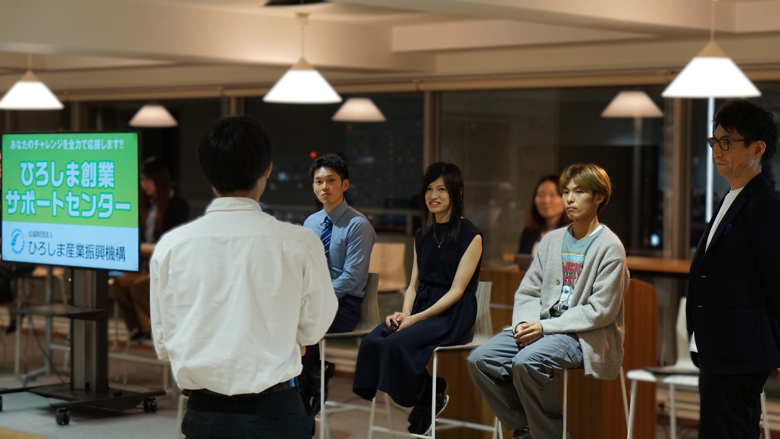 続いてトークセッションへ。県立広島大学の島川・川畑両准教授のファシリテーションのもと、叡啓大学3年青木さん(タスク管理アプリ開発)、県立大学1年小林さん(くわいペーパー開発)がそれぞれ起業体験や構想をプレゼン。「コンテンツを絞って商品化すべき」、「どうしてすぐに起業しないのか?」といった大塚さんの切れ味鋭いコメントに、大きくうなずいたり、笑いを誘われたり。会場はさらにヒートアップしました。